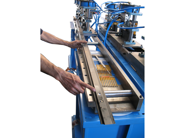 המערכת שלנו מיועדת לביצוע בו-זמני של ניקובים רבים בפרופילים ארוכים במיוחד. מספר מכבשים פניאומטיים הפועלים במקביל מספקים פעולת ניקוב מיידית, מהירה ומדויקת. מסילה מיוחדת מאפשרת הזזה לינארית של המכבשים במידת הצורך.